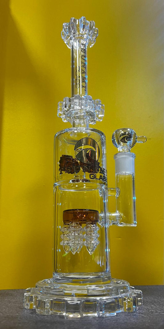 12" Tsunami Glass - Double Propeller Drum Perc Bong Or Recycler Dab Rig