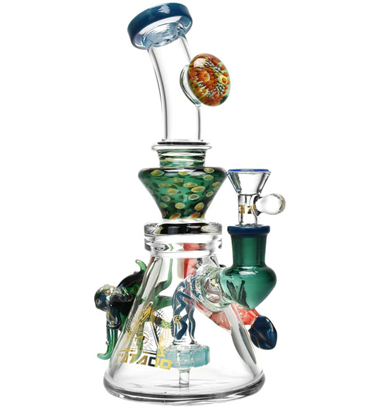 9" Tattoo Glass -Ocean Life Glass Water Pipe Bong