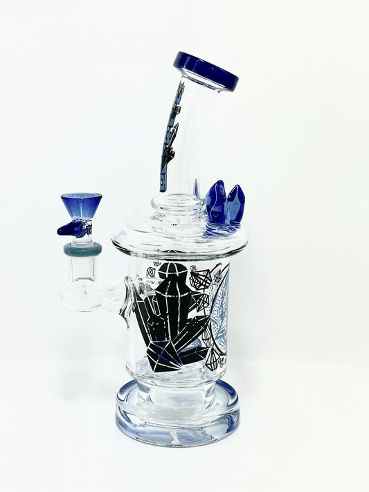 10" Tattoo Glass -illuminati Blue Crystal Ice Berg Glass Water Pipe Bong Or Dab Rig